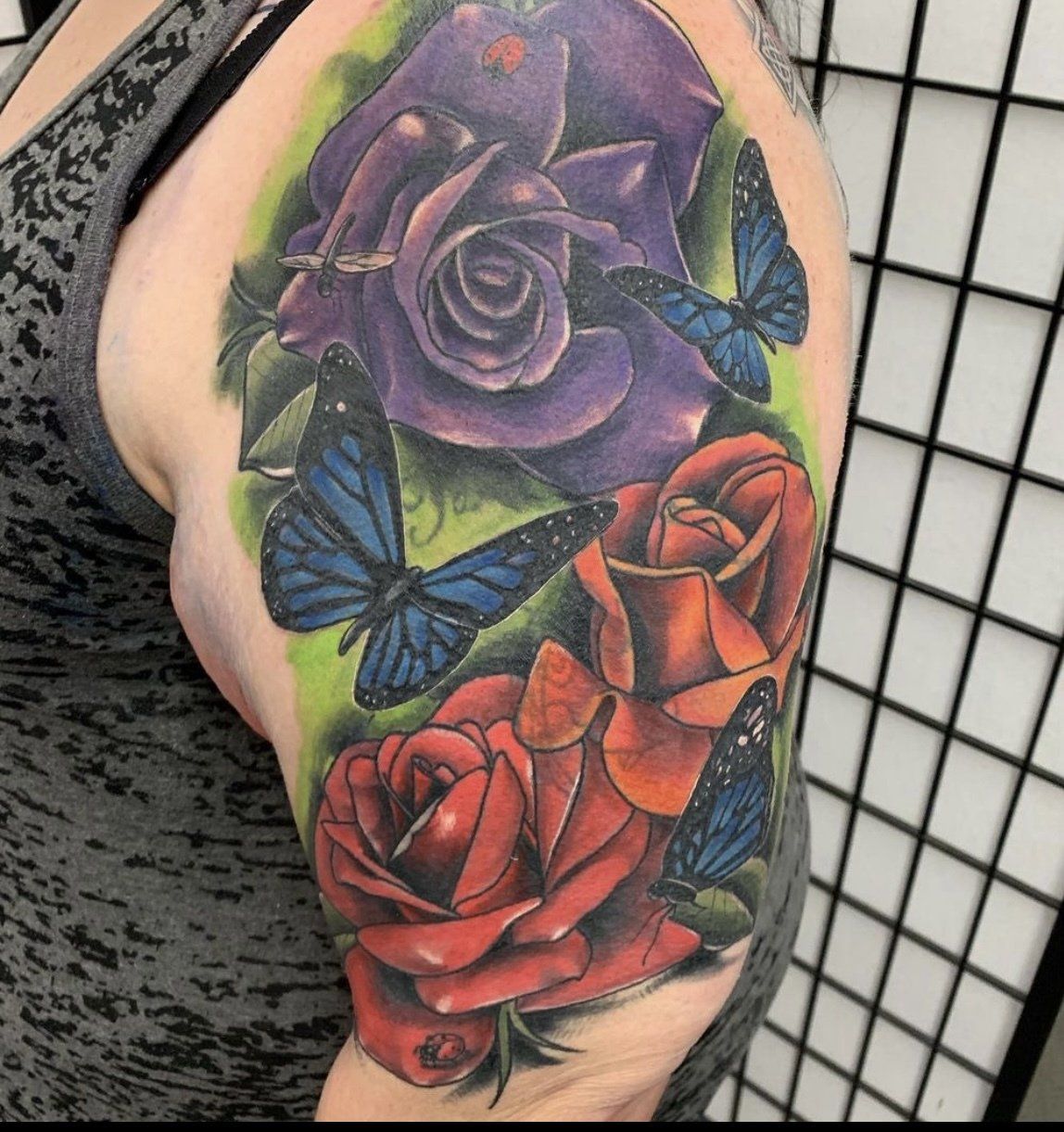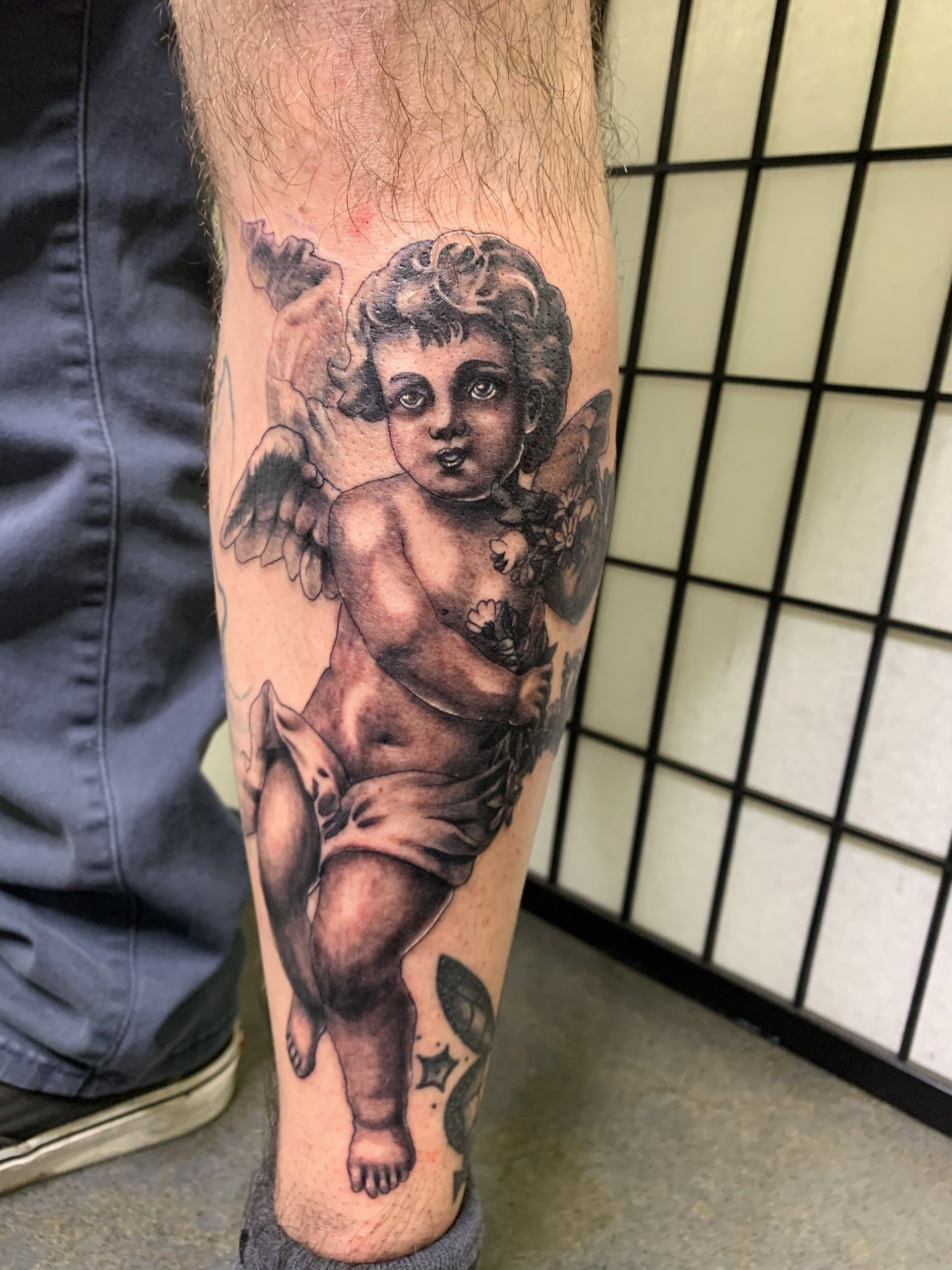 He specializes in single-needle tattooing, black and grey portrait style tattooing, and many more. He's been with Fat Cat Tattoo for 18 years.