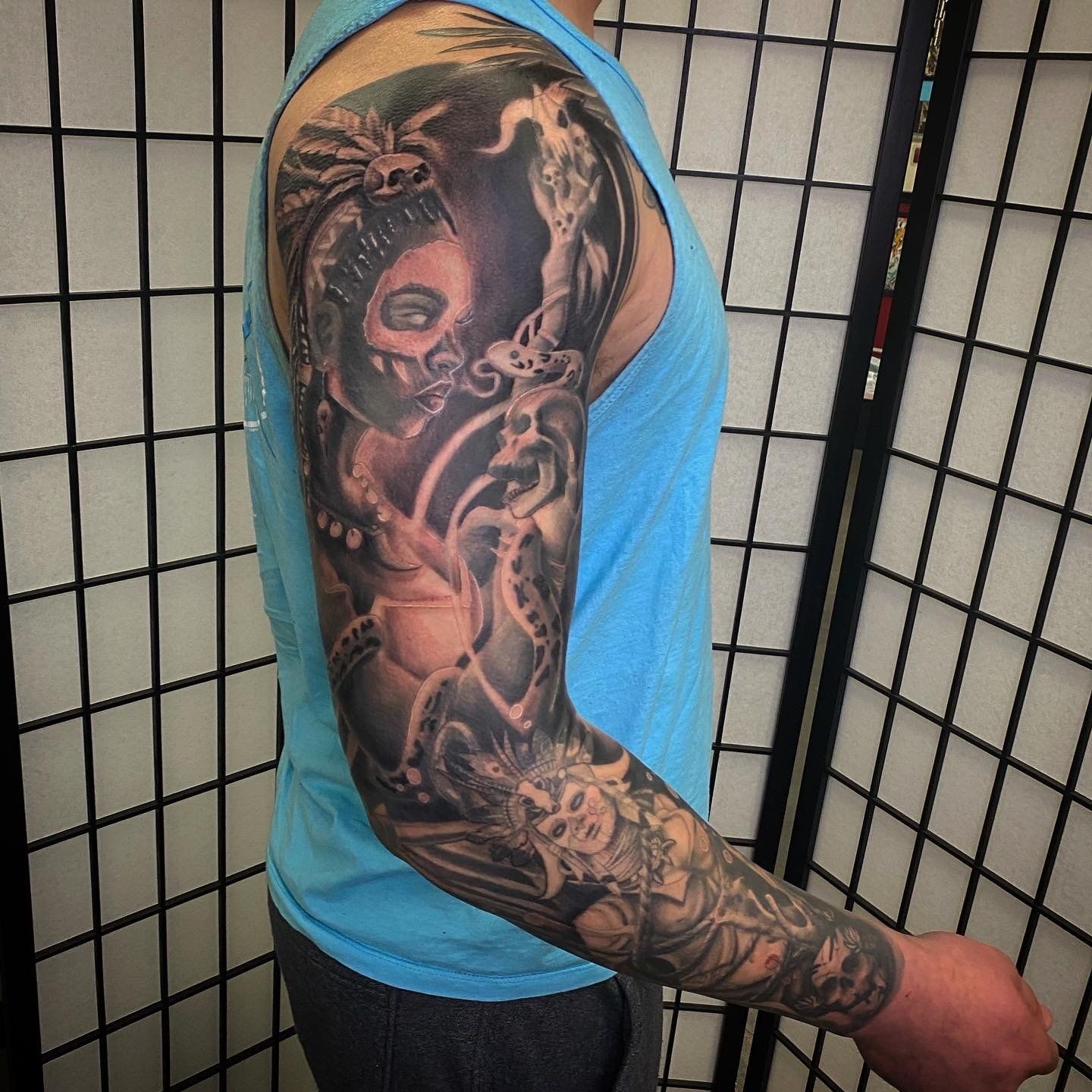 Aaron has 27 years of tattooing experience. In 1991 and 1992, he apprenticed under his brother at Good Time Charlie's in Anaheim, CA. Later His brother Danny and five other brothers opened up Romo ink in Fullerton, CA.
